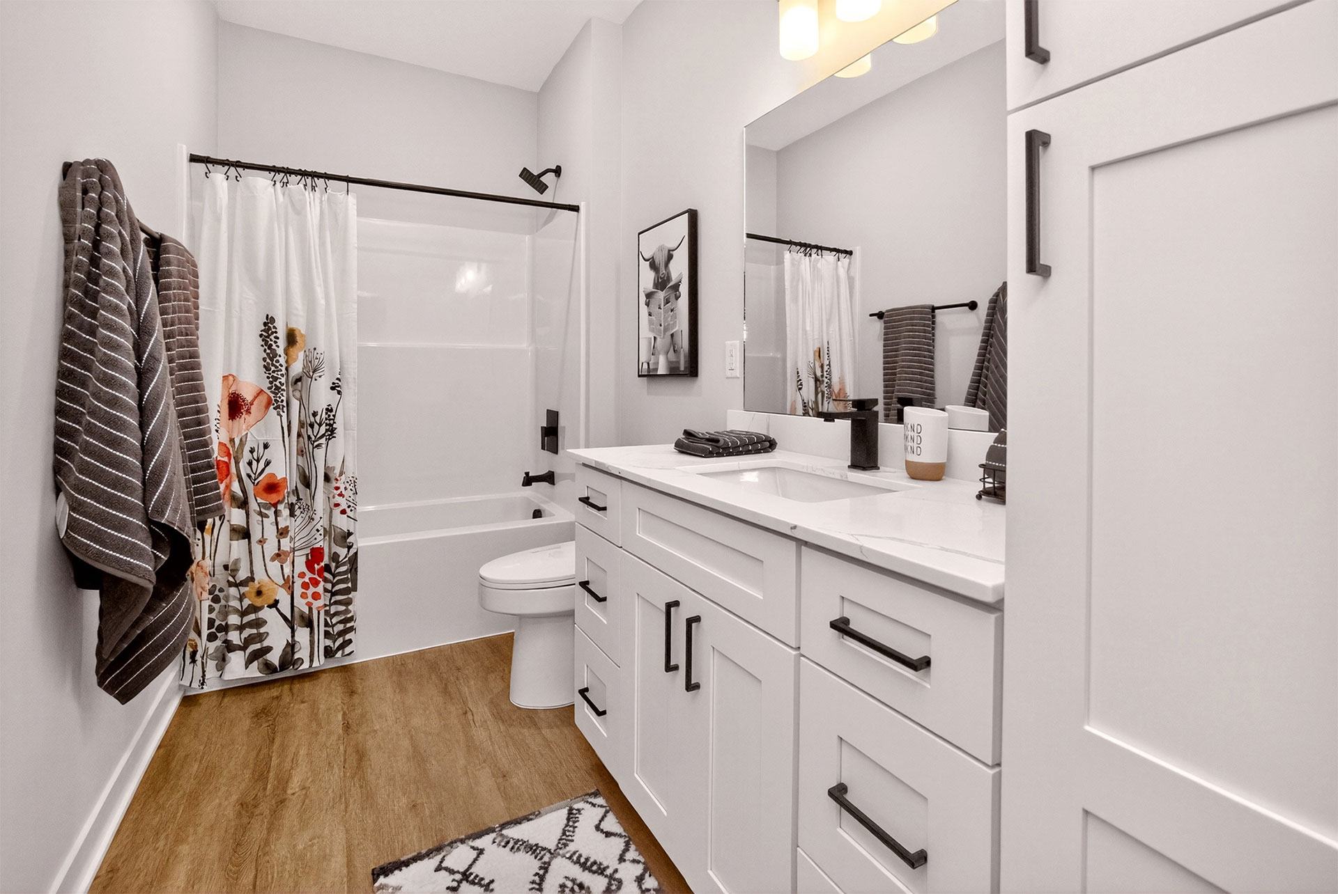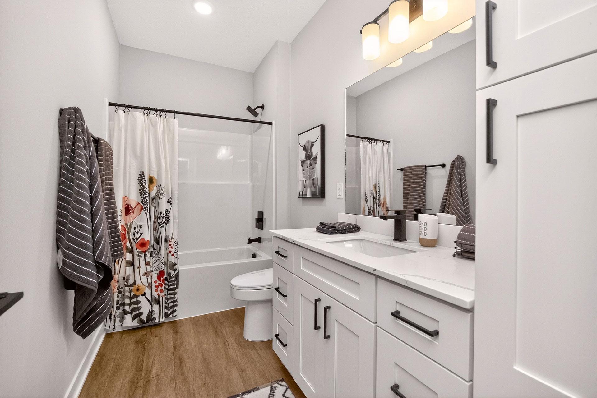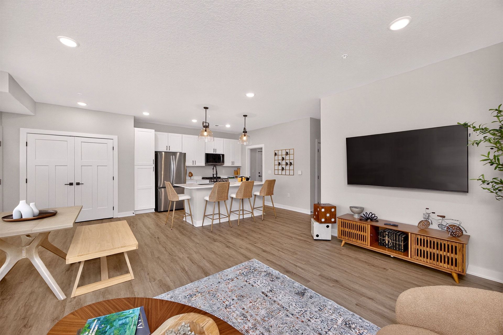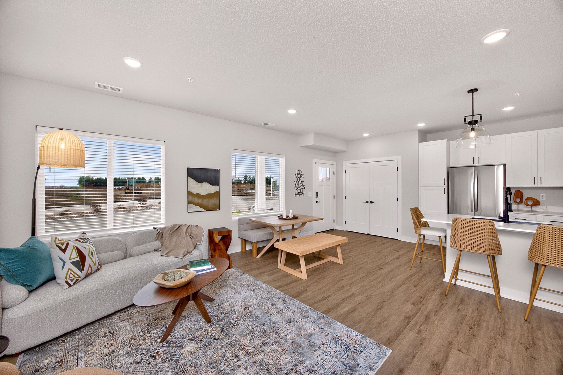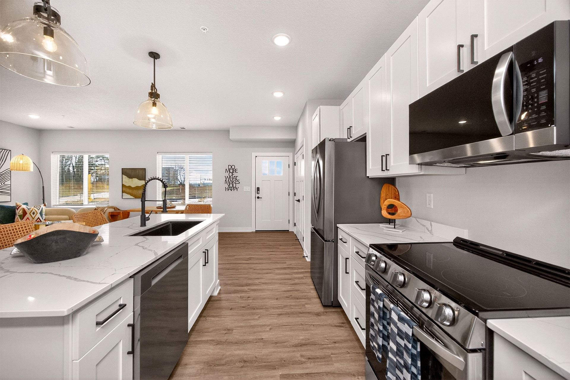 Picket Fence offers thoughtfully designed 1, 2, and 3-bedroom apartments and townhomes, each with an attached garage. Inside, enjoy quartz countertops, stainless-steel appliances, in-unit laundry, and elegant wood-style flooring. Select homes include private balconies, double vanities, and pantry storage.