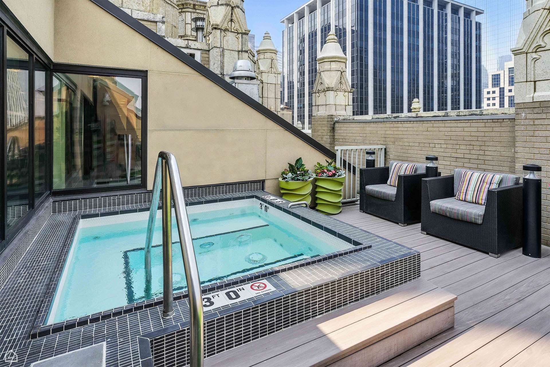 While the location is key, this 45-story-high skyscraper has also been completely renovated to provide renters with every amenity imaginable including a 24-hour fitness center, indoor SkyClub with gourmet kitchen and theater, an Olympic-sized swimming pool with waterfall. Additionally, each of The Randolph’s apartment homes features wood flooring, extravagant primary suites with oversized walk-through closets, spacious bathrooms with 36-inch soaking tubs, and sleek-styled kitchens.