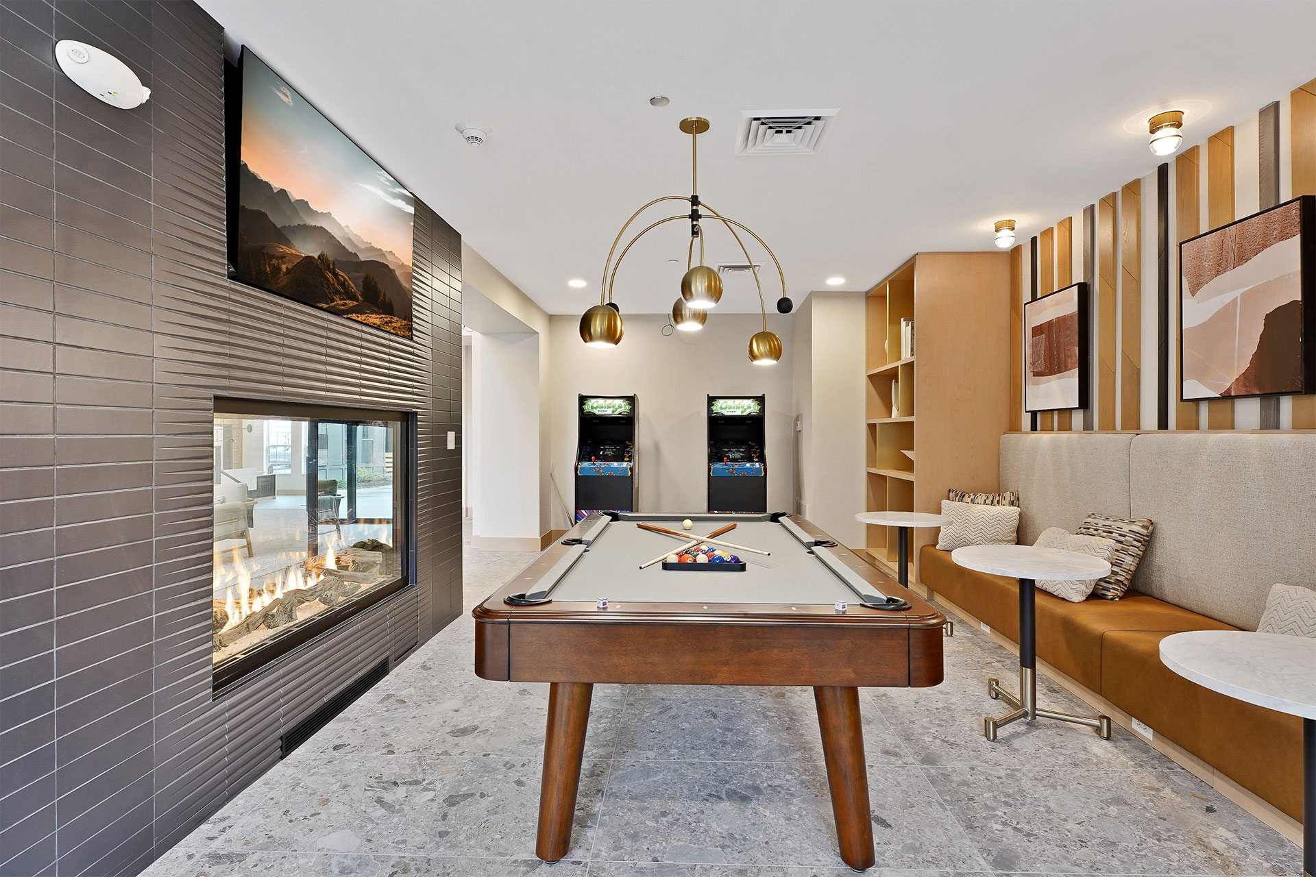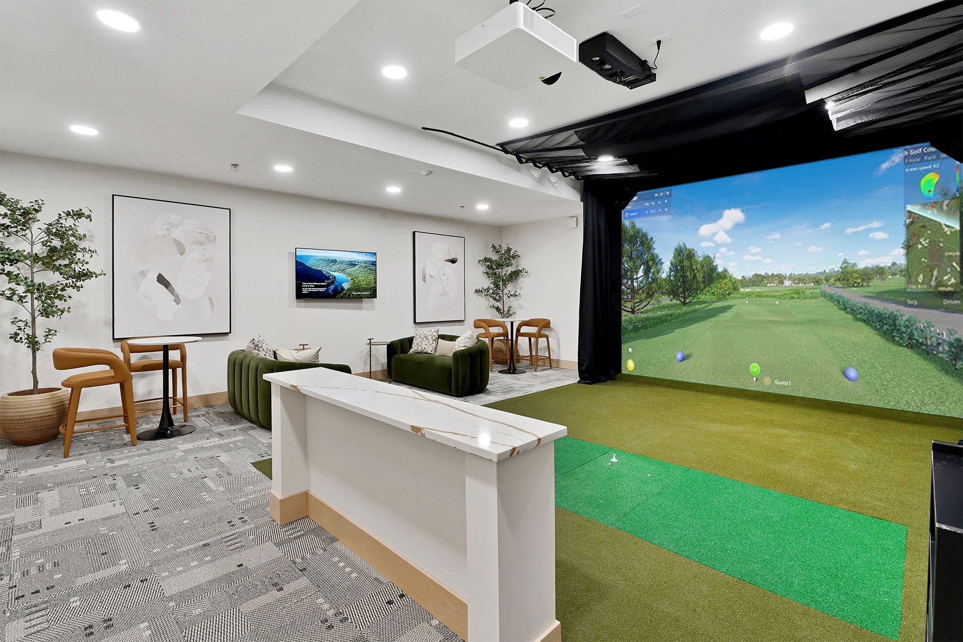 Residents at Metro 19 Apartments enjoy a range of upscale amenities, including an outdoor heated swimming pool, a 24-hour fitness center, an indoor golf simulator, and more. The community also offers co-working spaces, fireside lounges, grilling stations, and a gaming lawn.