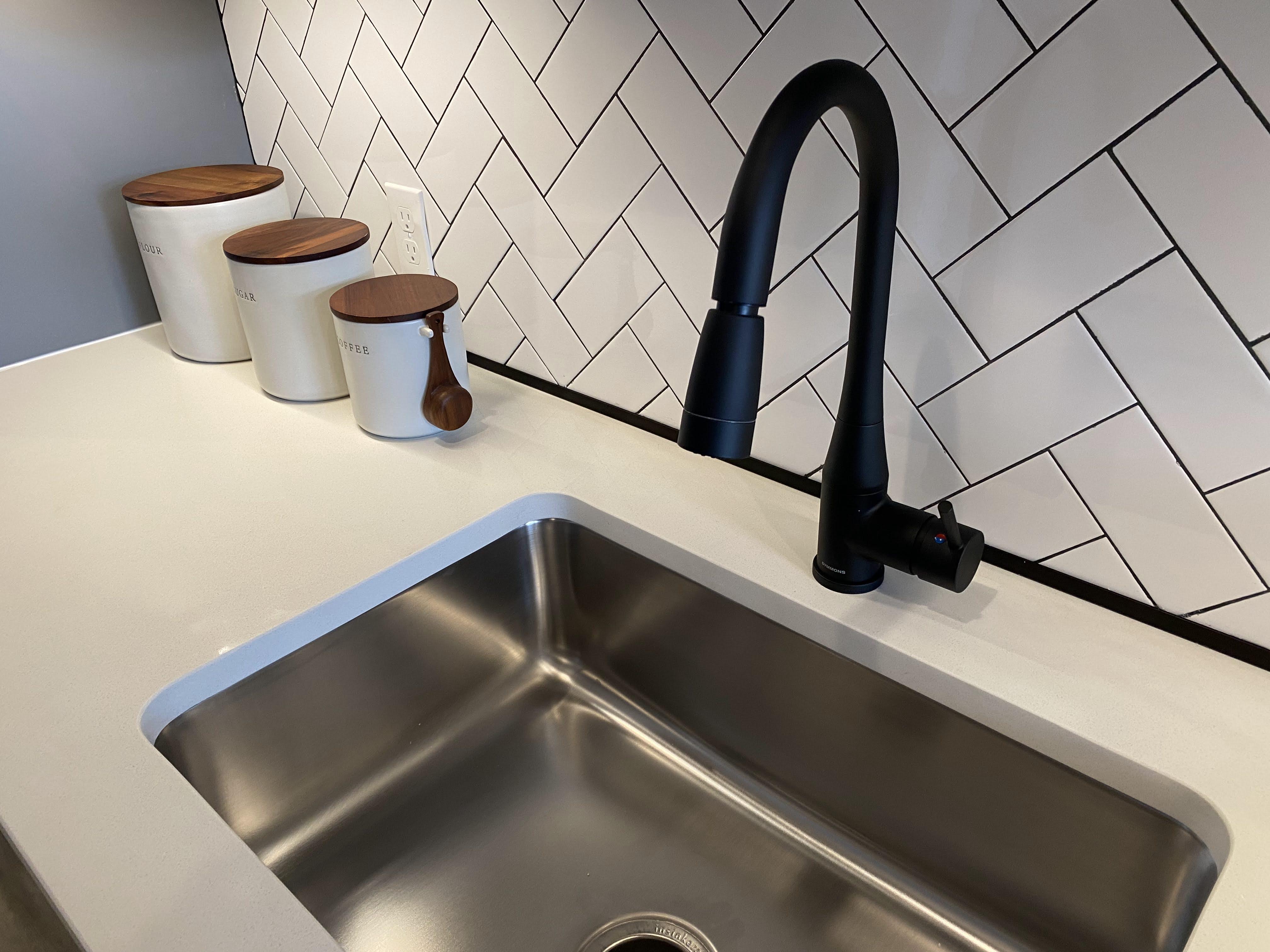 • White Herringbone Tile Backsplash