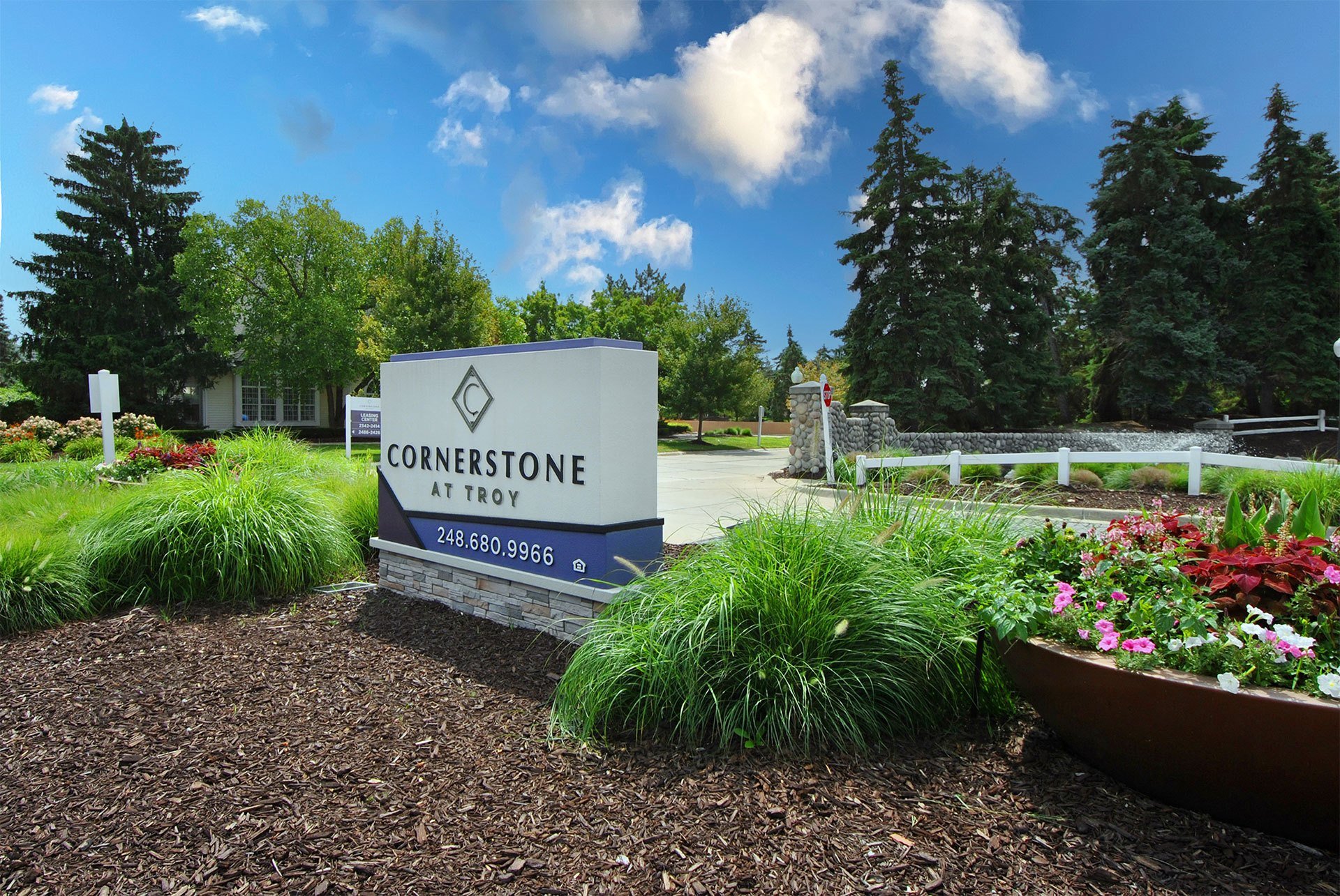 Cornerstone at Troy offers a selection of comfortable studio, one, and two-bedroom apartments for rent in an unmatched location! These newly renovated and pet-friendly residences unveil an open-concept galley-style kitchen stocked with conventional kitchen appliances, spacious carpeted bedrooms, a Google Nest thermostat, walk-in closets with custom shelving units, and an in-unit washer and dryer for added convenience. Our professional on-site management team is committed to ensuring your satisfaction every step of the way. Finding a space that reflects your individual style is easy with our collection of design finishes, ranging from classic to modern. Select units also feature granite countertops, sleek stainless steel appliances, fireplaces, and vaulted ceilings. Residents of Cornerstone at Troy also enjoy exclusive access to a handful of practical amenities, including an outdoor pool, business center, outdoor terrace with grill stations and firepit, and a full-body fitness center! We understand the value of a great location. Cornerstone at Troy sits on 20 lush green acres with proximity to Troy’s best shopping, dining, and more. This pet-friendly community delivers the perfect blend of private living with big city conveniences, including easy access to I-75, I-94, and I-696, proximity to Somerset Collection, General Motors, the Detroit Zoo, and six major teaching hospitals within 25 minutes.